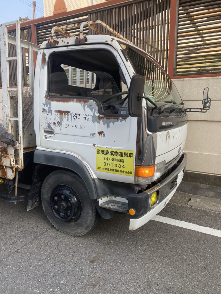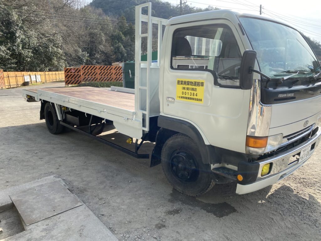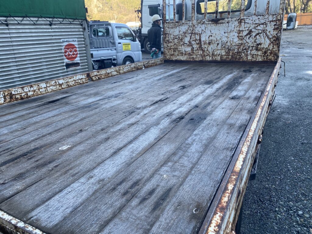 木パレや大きなフレコン・重機の運搬など、重量物を運び続けてくれた車輛。
